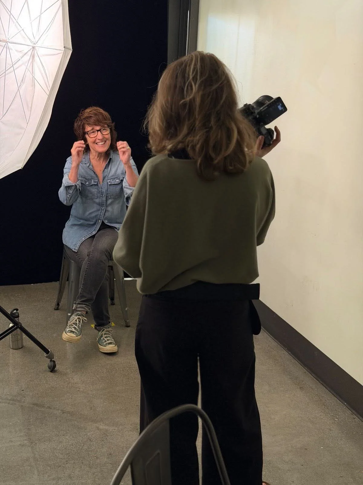 While they waited for their turn in front of the camera, parents Courtney Saunders (Media, 2024 & Fashion and Costuming, 2026) and Cristel de Rouvray (Spoken Arts and Vocal, 2028) interviewed them. Parent Josh Jacobson (Theatre Tech, 2028 & Musical Theatre 2030) took behind the scenes pictures (featured left) and parent Felisa Preskill (Creative Writing, 2029) fed everyone with cool drinks and homemade shortbread!