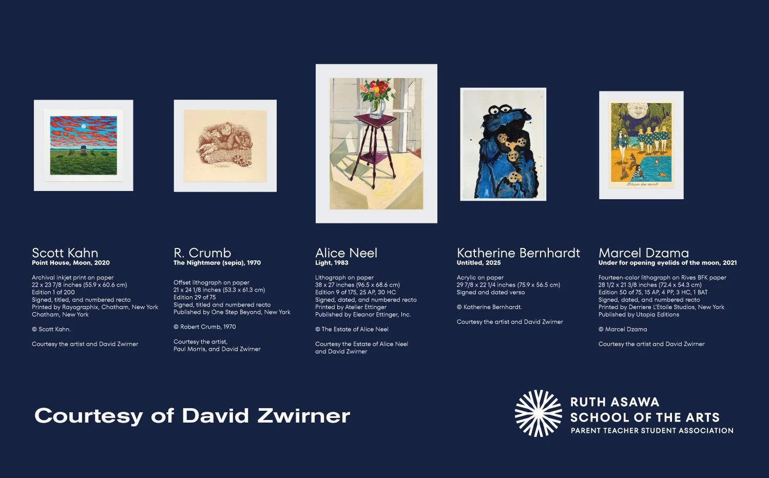 The PTSA is immensely grateful to the contemporary and legacy artists of the internationally renowned David Zwirner Gallery who have contributed major works of art to benefit Ruth Asawa School of the Arts, to honor Ruth Asawa’s passionate advocacy for arts education in San Francisco’s public schools.
